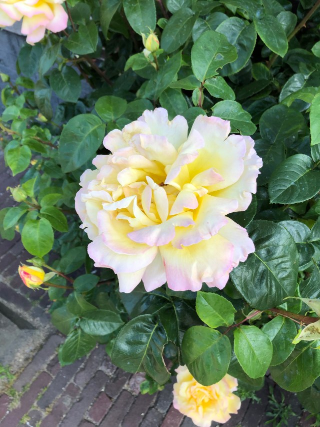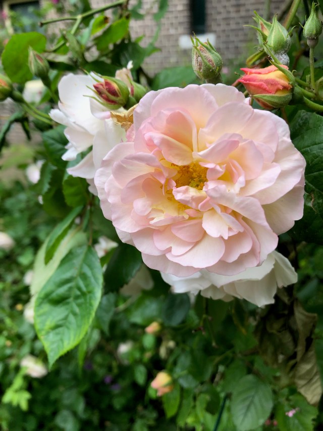 This seems to be an amazing spring/summer for roses – even mine are looking good (or were until it just started raining), and they are by no means my most successful plants. And it’s not just locally, either. We’ve just been to Amsterdam and Leiden for a few days, in beautiful weather, and roses are burgeoning everywhere from the botanic gardens to the pavements in fronts of the houses.