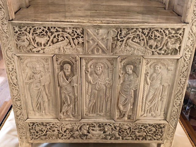 At the Archiepiscopal Museum in Ravenna, two details from the ivory throne thought to have been used by Archbishop Maximianus.