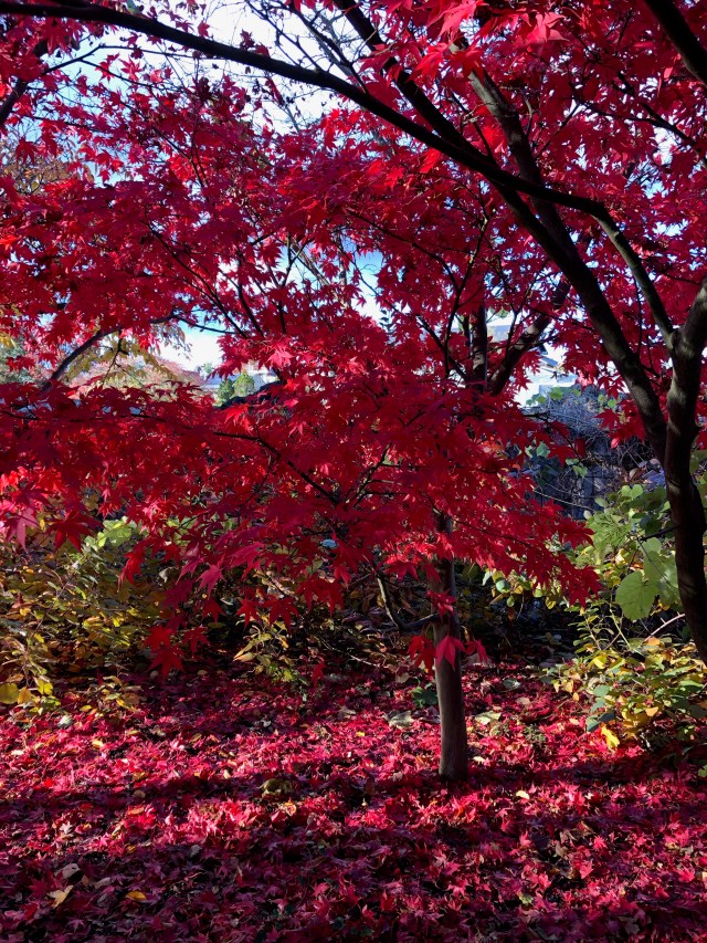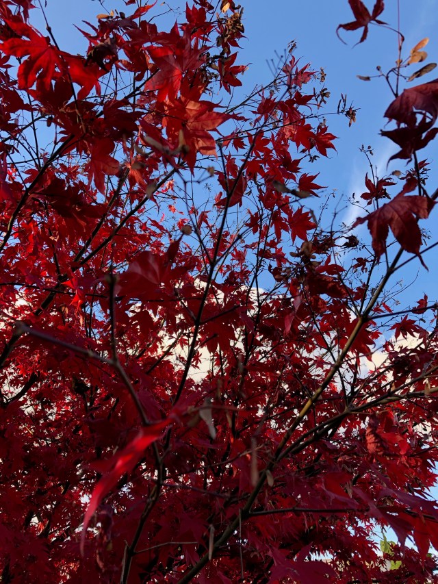 Many cultivars had been created by Japanese gardeners over the centuries, using plants from Korea and China as well as Japan itself. ‘Osakazuki’ seems to be over a century old, but I haven’t been able to find out if it was bred in East or West.