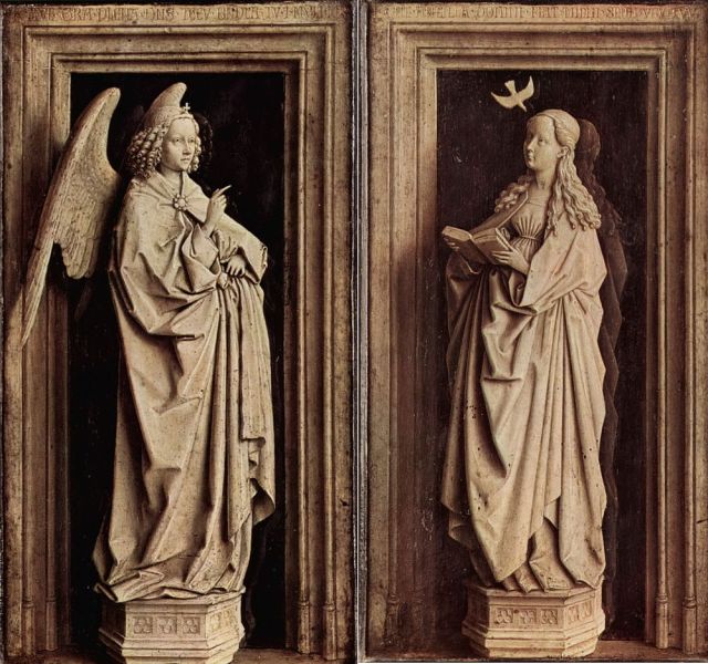 Van Eyck, ‘The Annunciation’. What must the other panel(s) have been like? (Credit: the National Gallery of Art, Washington, D.C.)