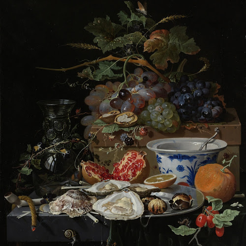 Abraham Mignon, ‘Still life with fruit, oysters, and a porcelain bowl’. (Credit: the Rijksmuseum, Amsterdam)