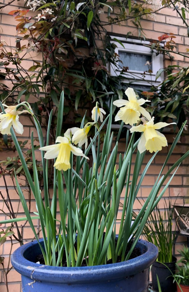 Last autumn, I wanted some new/different narcissi for my pots. (Tulips were already organised via the annual terrifying over-spend at Chelsea: many thanks, Mr Blom, they are looking wonderful!) So I went off to the local garden centre, where I found very few bulbs indeed – a general shortage resulting from the dry spring and summer last year? But they did have bags of N. ‘W.P. Milner’, so I got one.
