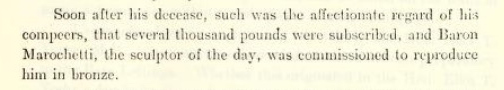 Sadly, in October 1862, his wife, visiting her brother Henry Marshall in Cambridge, became seriously ill. Her husband was sent for, apparently collapsed, and died five days after her, on 10 November, his birthday. Jonas and his wife were buried in Babraham churchyard (the Adeanes are all inside the church). The Babraham statue, created by Baron Carlo Marochetti, allegedly Queen Victoria’s favourite sculptor, was subscribed to by his fellow farmers.