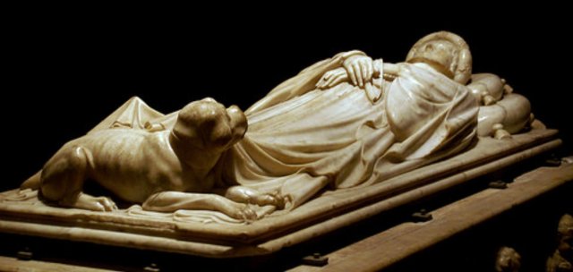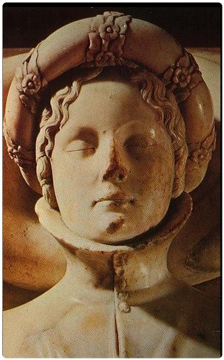 She lies now as she did then, with her little dog (a symbol of fidelity) at her feet, in a side-chapel of the Duomo di San Martino, dead in childbed at the age of twenty-six in 1405. The sculptor, Jacopo della Quercia (c. 1374–1438), was commissioned to make the memorial by her husband, Paolo Guinigi (c. 1372–1432), a member of the ruling family of Lucca who had risen to the top (as so often in Italy) through internecine murders plus the plague. He was not exactly a good egg, but he did improve the commercial status of his city, not least by the trade of Carrara marble and by encouraging silk-weaving. But in the wider world, it is the funerary monument of his wife for which he is remembered.
