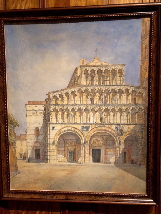 My favourite chapter is ‘Ruskin’s Ilaria’ – not least because I am still cast down at not having gone to Lucca as planned on 18 March. Continuing the 1882 journey, on 22 September they arrived in Turin (‘Filthy city’), and later Genoa fared little better – ‘a day of disgust at all things’. They caught the train to Pisa (Ruskin, in spite of his abominating the railways in principle, wasn’t above using them in practice), but even that failed to charm – the noise of the railway, ‘diabolical’ trams and too many smoking chimneys since his last visit. So ‘at noon, he ordered the carriage for Lucca’.