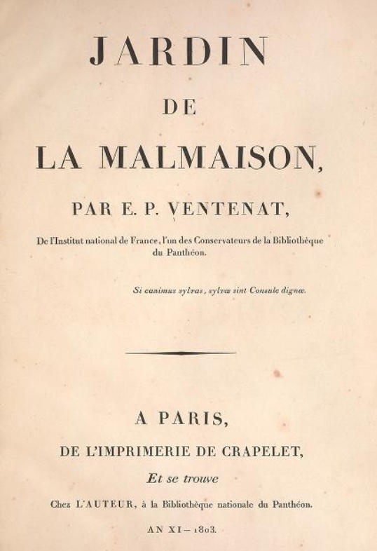 Pausing to note only that Ventenat wrote the text for Le Jardin de la Malmaison, commissioned by ‘Madame Bonaparte’ (later the Empress Joséphine), and published in 1803, which is rather more famous for its illustrations by Redouté, we can return to the trees.