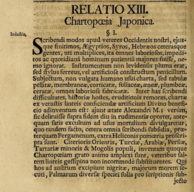 The opening of Kaempfer’s description of Japanese paper-making, with a historical overview of the writing surfaces used in the ancient Near East.