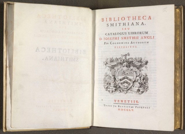 The title page of the 1755 version of Smith’s catalogue, published by G.B. Pasquali. (Credit: the Royal Collection Trust)