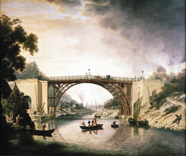 A view of Pritchard’s Iron Bridge in 1780, by William Williams. (Credit: Ironbridge Gorge Museum)