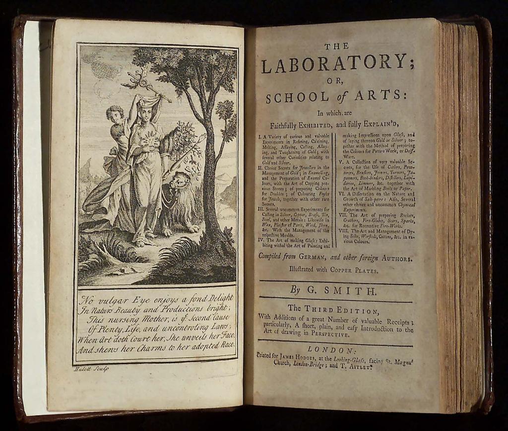 It has also been suggested that Garthwaite wrote A short Introduction to the Art of Drawing in general; with an Essay on designing and drawing Patterns for the Flower’d silk Manufactory, Embroidery, and Printing, which appeared in the 1759 edition of The Laboratory; or, School of Arts: in which are Faithfully Exhibited, and Fully Explain’d, edited by one Godfrey (or possibly George) Smith, about whom not much seems to be known. (The book gives detailed instructions on how to make everything from gold jewellery to fireworks, and also includes a long section on the dyeing of threads and textiles.)