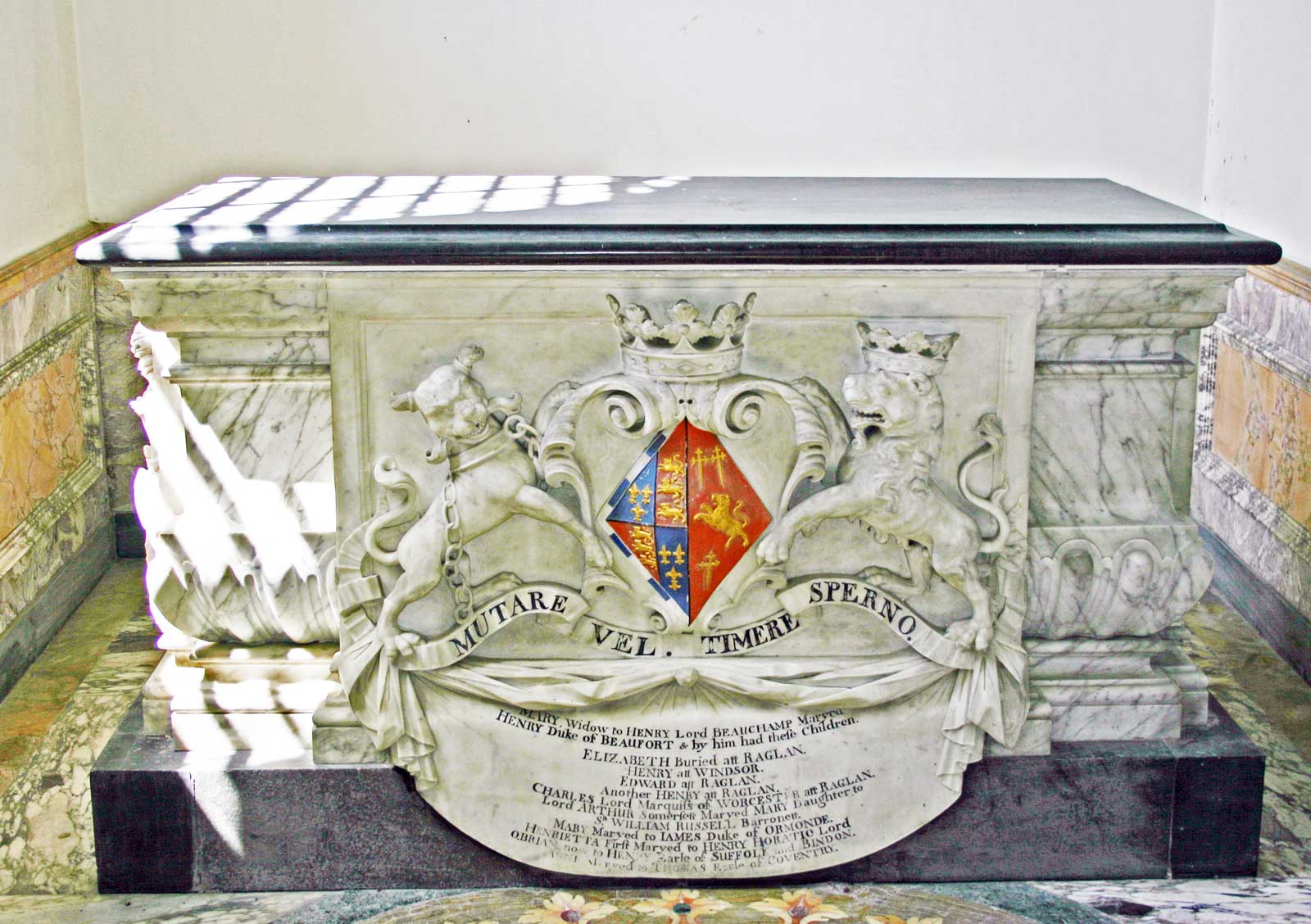 Mary’s first marriage had apparently been a happy one, but, as was almost inevitable at that time, she married again after three years of widowhood: her second husband was (slightly confusingly) Henry Somerset, Lord Herbert (1629–1700). The Somersets were marquesses of Worcester, and Catholics: Henry had been sent to France and Italy with a tutor for his education in 1644 and returned in 1650 to find his home, Raglan Hall, destroyed and his estates sequestered. However, surprisingly, he got on well with Oliver Cromwell, through whom he managed to claw back part of his inheritance.