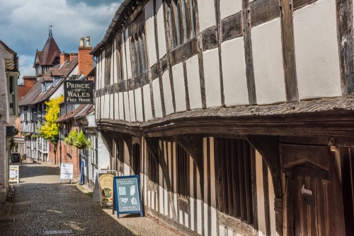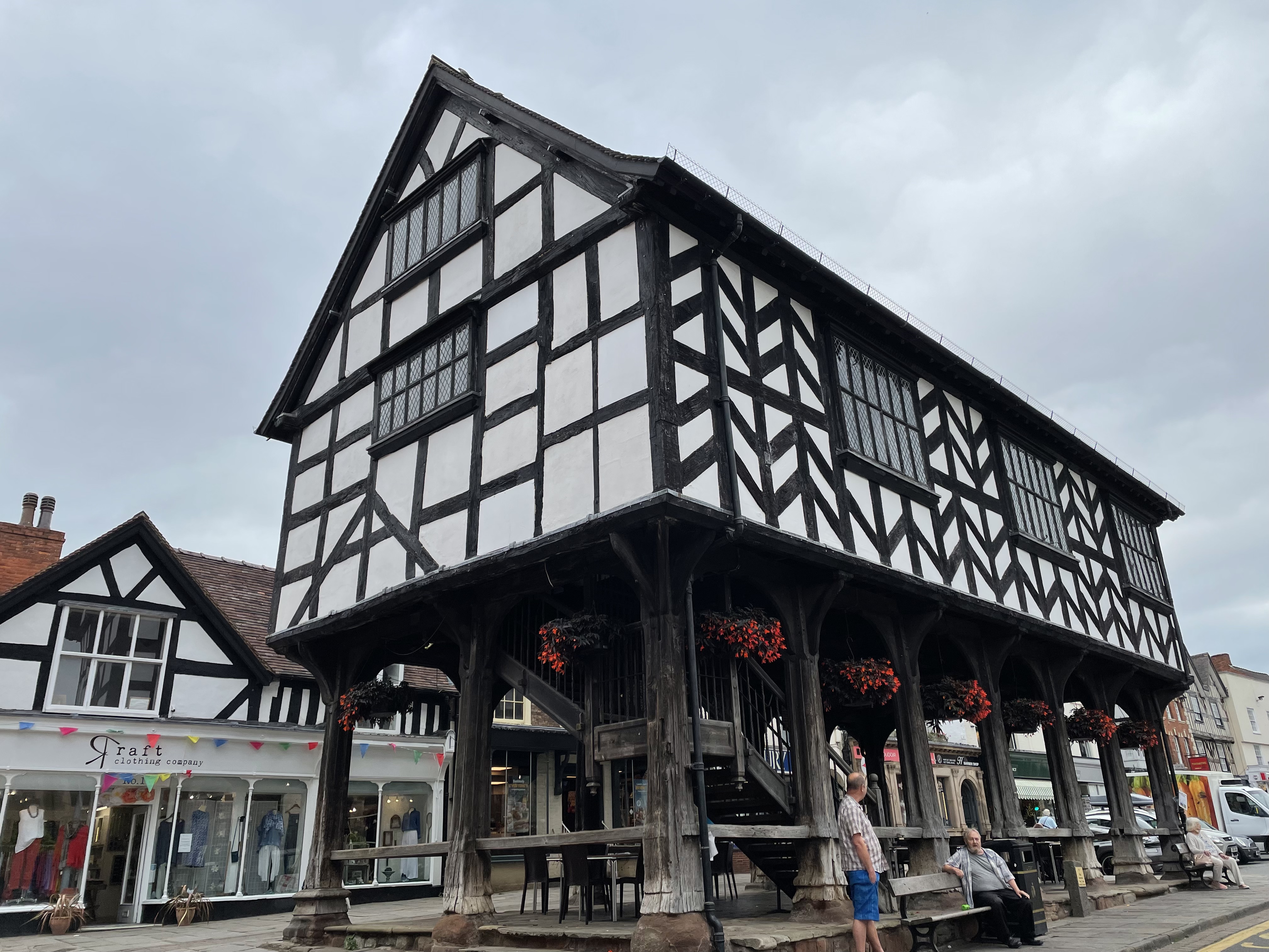 It is a picturesque large village/small town, with a famous ‘Market House’ on the High Street (above), and many other black-and-white buildings. Church Lane, a cobbled path up from the High Street up to the church is lined with ancient houses, many of which used to be butchers’ shops – one is left, as the Butcher Row House Museum, opposite the Heritage Centre, which was formerly a butcher’s smokehouse, and later the grammar school, where Latin was taught to the local boys during a twelve-hour school day.