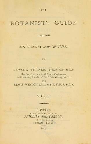 In 1805, with Lewis Weston Dillwyn (1778–1855), he published a two-volume Botanist’s Guide through England and Wales, which, beginning with Anglesea [sic] lists the plants found in the counties of England and Wales, drawing on earlier publications – Ray, Thomas Martyn and Relhan, as well as various parson-naturalists, in the case of Cambridgeshire – and apologises in the Preface for the imperfections inevitable in producing such a guide, not least of which is ‘the impossibility of avoiding mistakes respecting the names of places, the orthography of which is in many instances so little settled’, to say nothing of ‘the confusion of the synonymy, arising in part from the inaccurate observations of the more early authors, but, in much greater degree, from the changes, … among the names as well as of the genera, as of the species, the unsettled state of which must long continue a material obstacle’.