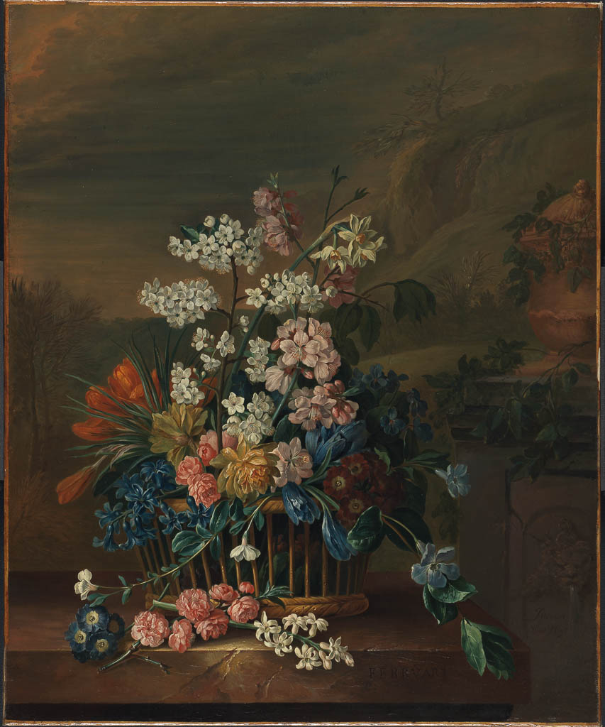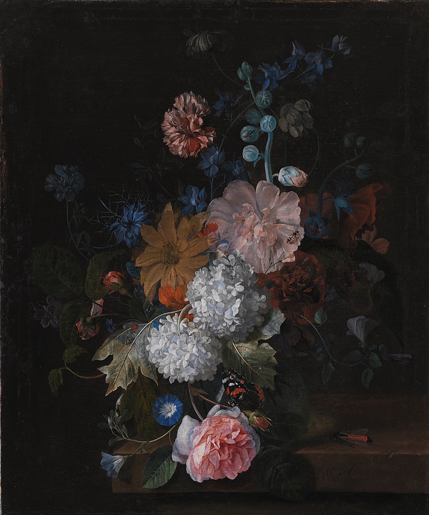 The painter Justus van Huysum the elder (1659–1716) had four sons, all of them painters: Justus the younger (1685–1707), Michiel (1704–1760), Jan, and Jacob. The family came from Amsterdam, and the family industry was flower painting, ever since Justus the elder’s father Jan moved there from a village near near Leeuwarden in Friesland around 1655.