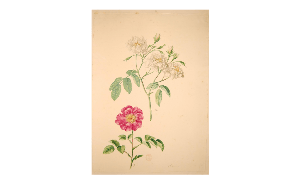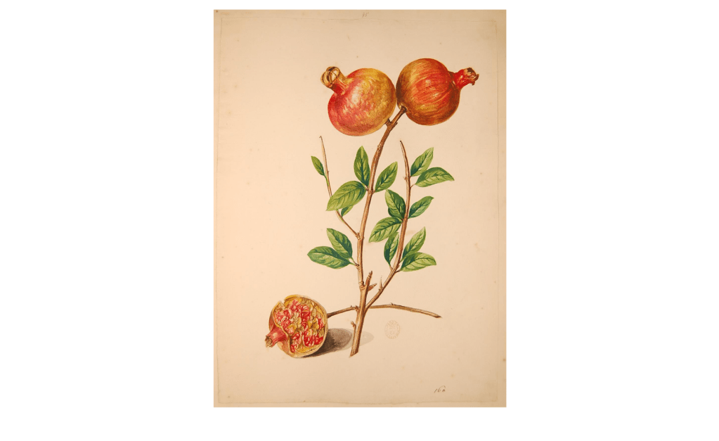 The original drawings can be seen in albums held at the British Museum: here are pomegranates and roses.