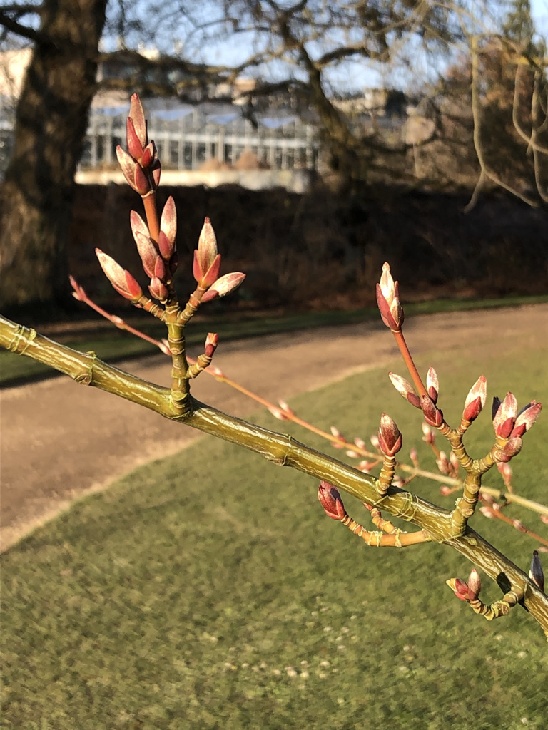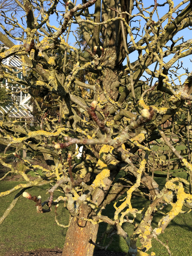 The Yoshino cherry in bud yesterdayNearby, the Malus trilobata (the Lebanese wild apple)By the glasshouses, Tetrapanax papyrifera, the rice paper plantNear the stream, Cerdiciphyllum japonicum ‘Pendula‘, the katsura treeMagnolia denudata, the lily treePaeonia lutea var. ludlowiiQuercus libani, the Lebanon oakParrotia persica, the Persian ironwoodEucommia ulmoides, the gutta-percha, formerly a source of golf ballsTilia mongolica, the Mongolian lime or lindenFagus sylvatica f. purpurea, the purple beechFraxinus ornus, the manna ashAmelanchier lamarckii, the snowy mespilus or JuneberryAnother Prunus x yedoensis, near the Hills Road gateAesculus flava, the yellow buckeye