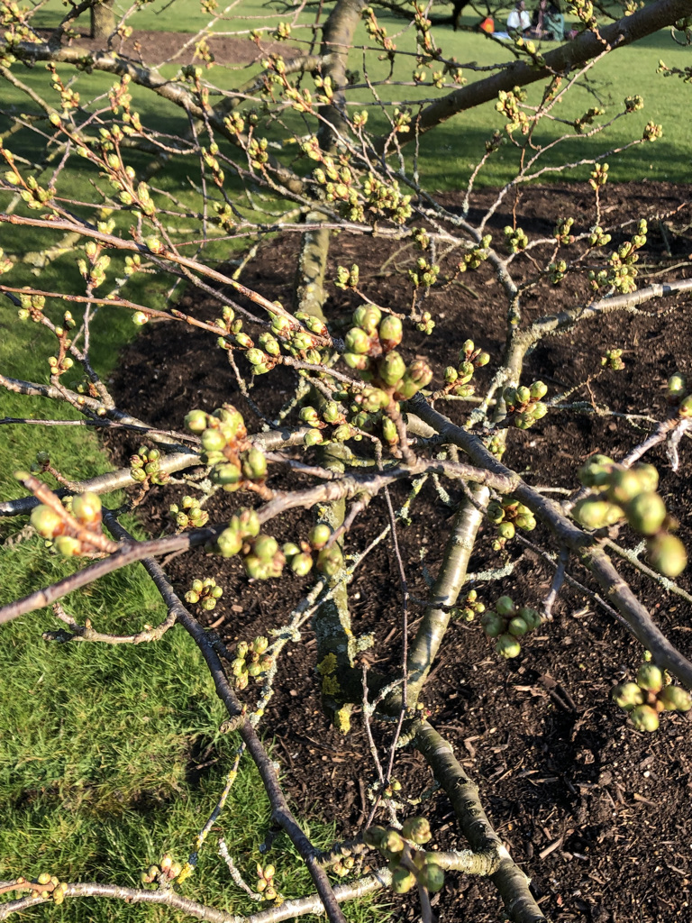 March is all about anticipation: admittedly, whitethorn and Prunus cerasifera are doing their thing, and Mahonia is almost over, but, in the Botanic Garden, I don’t imagine I am the only person checking up on the great Prunus x yedoensis (the Yoshino cherry) on the Main Lawn, of which the flower buds are swelling in a manner which is both gratifying and hugely exciting. If nothing goes wrong in the way of storms or severe frosts, this will be a vintage year for the Garden’s greatest poster child.