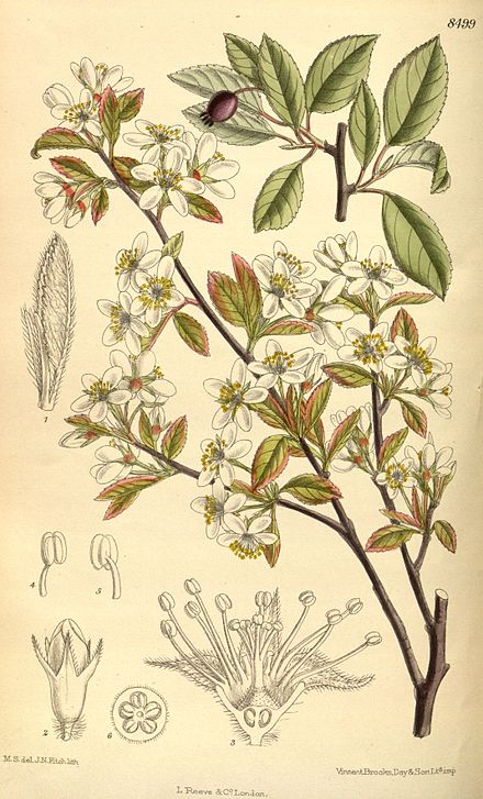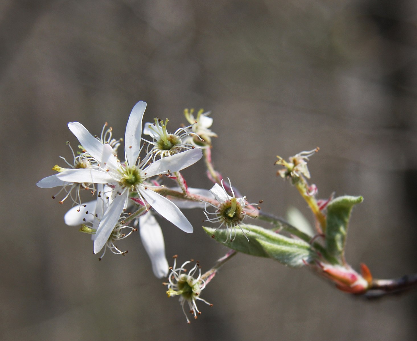 Most of the Amelanchier genus (in Malinae, Maleae and eventually Rosaceae) come from North America or Asia. There are a lot of them: at least twenty-two species, and of course many hybrids. Confusion is increased by the doubling up of names – snowy mespilus, for example, is used for both lamarckii and ovalis (the latter also named by Medikus).