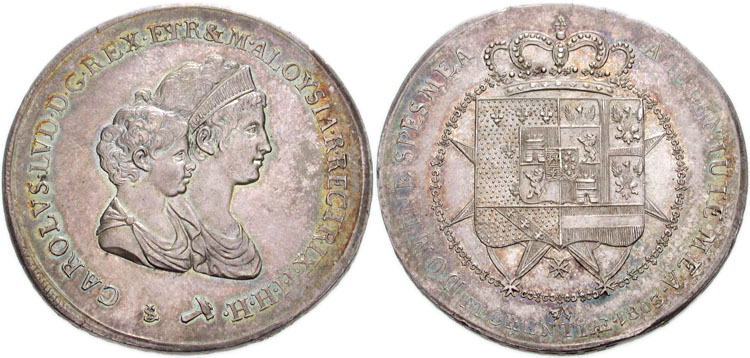 For those who are still with me, we now go back in time to look at the life and travails of Maria Luisa of Bourbon-Parma (1782–1824), queen of Etruria, duchess of Parma and duchess of Lucca. Her father was Charles IV of Spain and her mother Maria Luisa of Parma (a formidable lady, accused of poisoning her daughter-in-law, Princess Maria Antonia of Naples and Sicily, who in fact almost certainly died of tuberculosis). She had thirteen siblings, including an elder sister, also Maria Luisa, who died in 1782 at the age of nearly five, and several others who died in infancy; her mother also had ten miscarriages. As was the custom of the time, such children as survived to their teenage years were married off advantageously, often to members of the wider family: her sister Maria Amalia (1779–98) was married to her own uncle, twenty-four years older than her, and died after giving birth to a stillborn son at the age of nineteen.