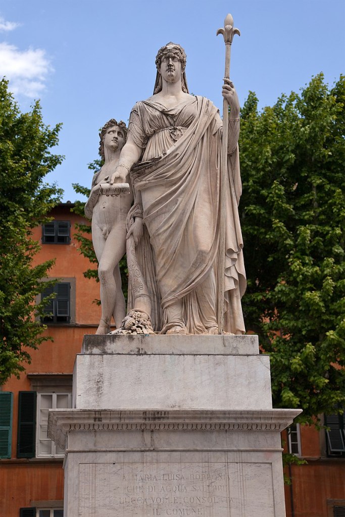 After Waterloo, it was decided that she could not regain Parma for her son (it was given to Napoleon’s second wife, Maria Louisa (various spelled) of Austria, who became duchess Parma, Piacenza and Guastalla from 1814, marrying twice more after Napoleon’s death in 1821), though he could succeed to it after her death. However, Maria Luisa was given Lucca in compensation (while retaining the status of a queen), but for nearly two years she hesitated. It may have been her brother’s and father’s proposal that her daughter should marry her own youngest brother that made her decide to retrieve a small amount of autonomy. On 17 December 1817 she arrived in Lucca as the ruling duchess; her son would inherit on her death.