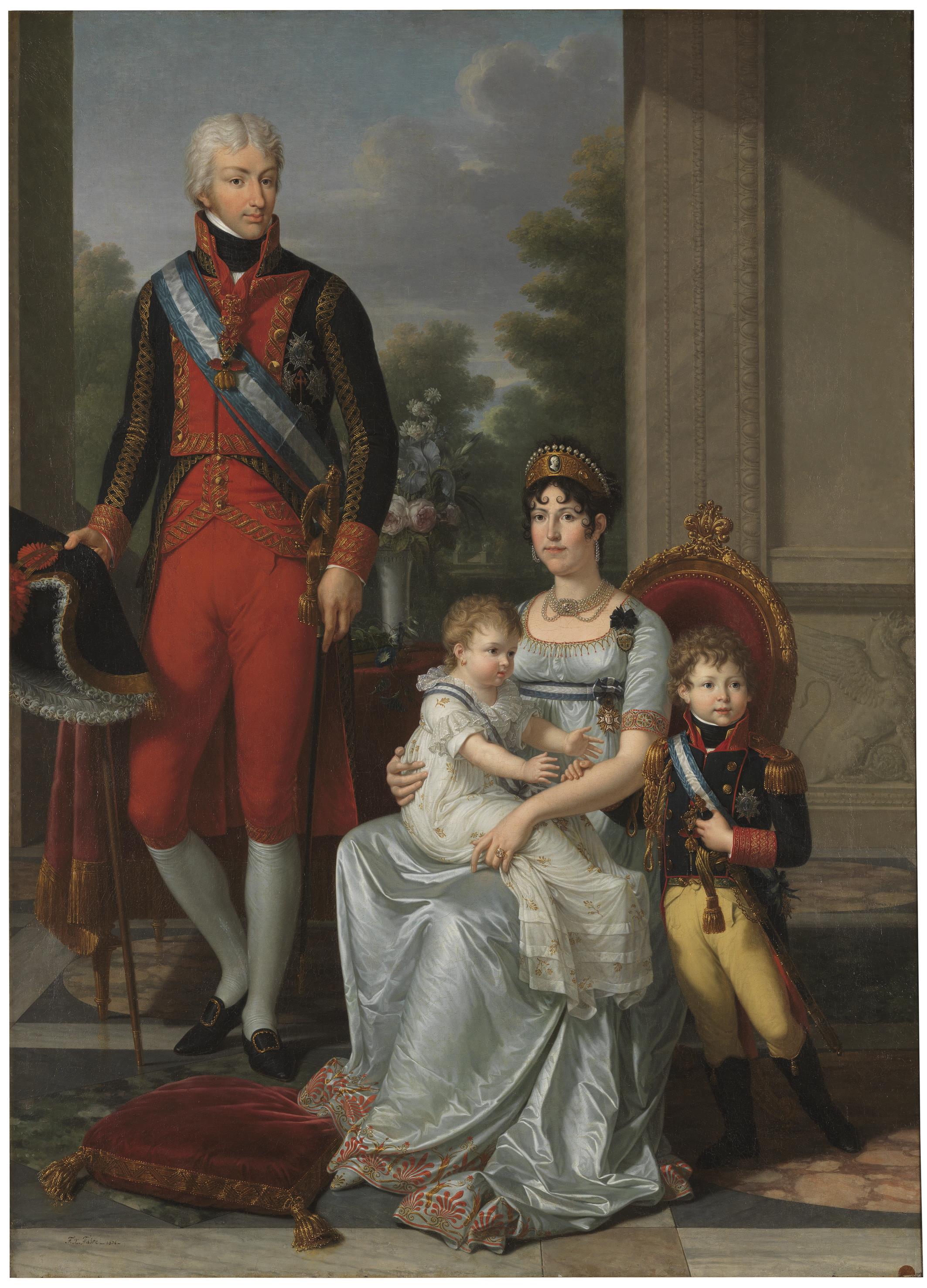 The couple returned to Spain in October 1802 for another family double wedding, but the pregnant Maria Luisa gave birth to a daughter, Maria Luisa Carlota (1802–57) at sea, and it was thought unlikely that either would survive. Happily, they did, though they missed the wedding. Charles IV insisted that they stay in Madrid until December (during which time Louis’s father died), and eventually got back to Italy early in 1803. Louis was by now so ill that he rarely appeared in public: to conceal his condition, Maria Luisa took on his public role, as a result of which she was decried for keeping him prisoner while she frolicked in public. He died after an epileptic fit on 27 May 1803, and Maria Luisa, aged twenty, became regent for their four-year-old son.
