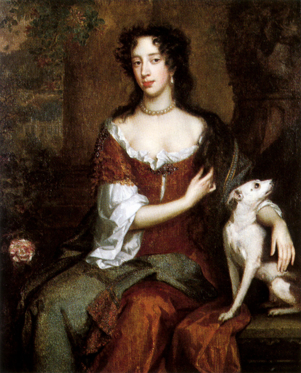 Five to ten years later, Mary of Modena is portrayed by William Wissig as a typical dark-haired, heavy-lidded habituée of the Stuart court. She was later endlessly Lelyfied. (Credit: National Portrait Gallery)